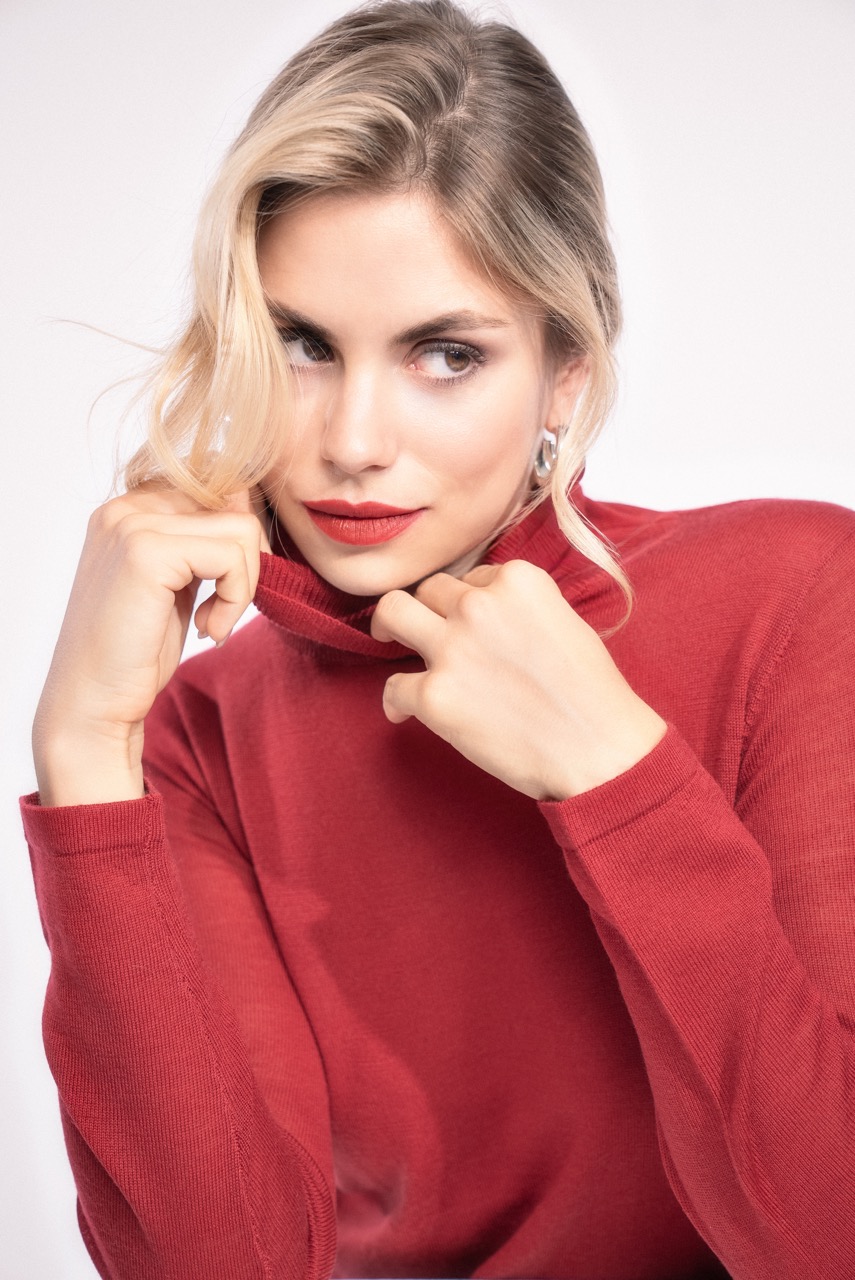 Sanft zurückgenommene Haare, die am Hinterkopf mit einem Medium Hairclip fixiert werden, verleihen dem Half-Up eine elegante Struktur. Der restliche Haarbereich fällt in weichen Wellen über die Schultern und sorgt für eine feminine, romantische Note – ideal für entspannte Weihnachtsfeiern oder gemütliche Abende mit Familie und Freunden.